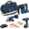 Sveobuhvatan profesionalni set namenjen majstorima koji žele maksimalnu pokrivenost poslova jednim paketom – bušenje i uvrtanje, sečenje i brušenje, kao i zahtevni radovi u betonu. Kombinacija vibracione bušilice-odvrtača GSB 18V-65, ugaone brusilice GWS 18V-11 i elektro-pneumatske čekić bušilice GBH 18V-24 C omogućava efikasan rad na gradilištu, u radionici ili pri montažama.