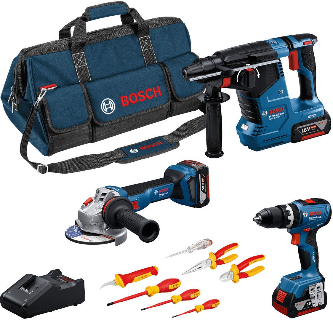 Akumulatorski set Bosch GSB 18V-65 + GWS 18V-11 + GBH 18V-24 C + 3 × GBA 18V 5,0Ah + VDE set ručnog alata + torba (0615A5007H)