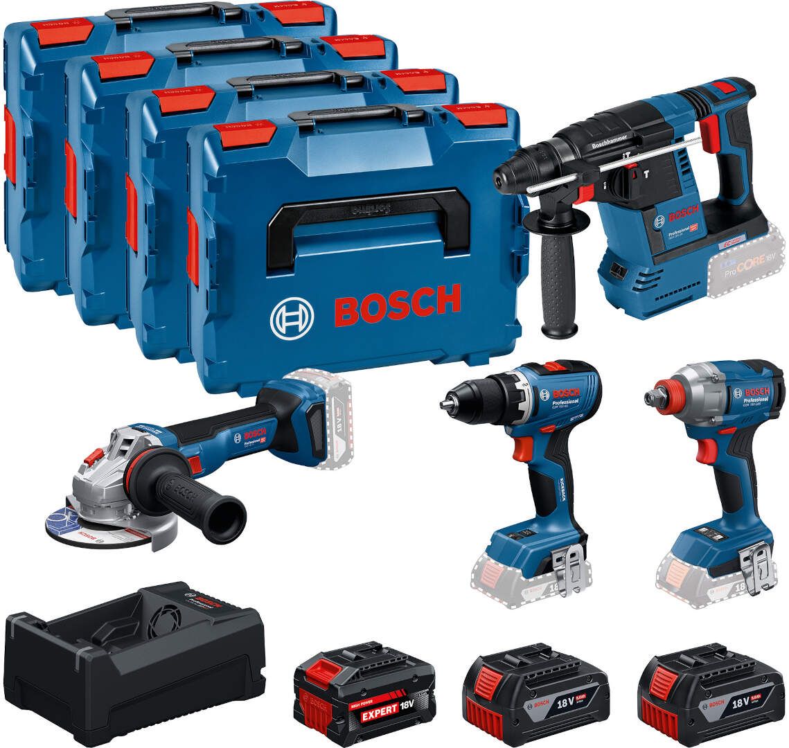 Ovaj Bosch Professional set predstavlja odličnu kombinaciju alata za svakodnevne i zahtevne poslove na gradilištu i u radionici. U kompletu dobijate bušilicu-odvrtač, udarni odvrtač, elektro-pneumatski čekić i ugaonu brusilicu, uz baterije, punjač i transportnu opremu. Kupovinom kompleta ostvarujete uštedu od 25% u odnosu na pojedinačnu kupovinu.
