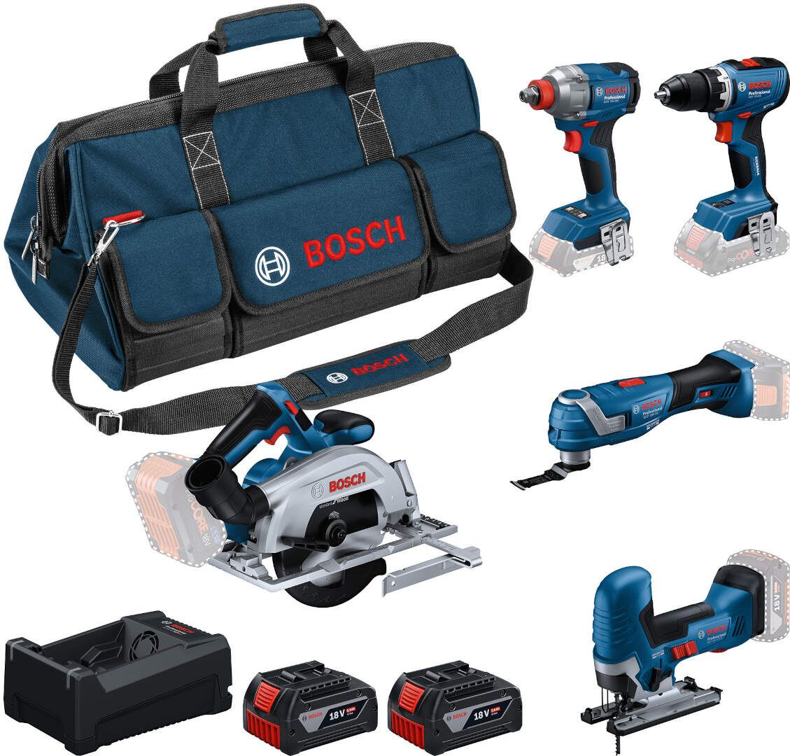 Odlična kombinacija alata za gradilište i radionicu: bušenje/šrafljenje, udarno zavrtanje, sečenje (cirkular + ubodna), renoviranje/obrada