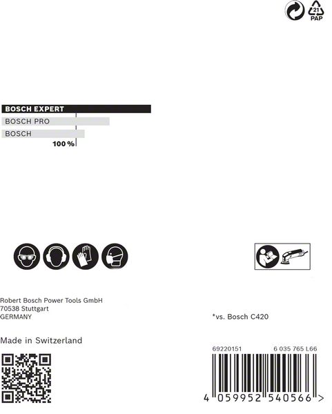 Do 4x bolje smanjenje količine prašine u odnosu na Bosch C420 brusni papirIzuzetno efikasno uklanjanje prašine uz Bosch Particle Control.Samo zakačite pomoću čičak trake.Idealna je za veoma delotvorno brušenje ravnih površina uz vrlo malo prašine, za brušenje i pripremu površina za farbanje i za pripremu ili završnu obradu gipsa.EXPERT abrazivi – najbolji za sve zanate.