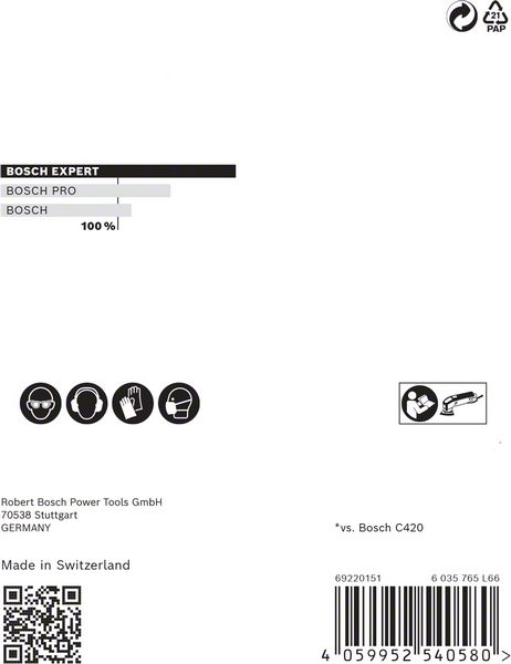 Do 4x bolje smanjenje količine prašine u odnosu na Bosch C420 brusni papirIzuzetno efikasno uklanjanje prašine uz Bosch Particle Control.Samo zakačite pomoću čičak trake.Idealna je za veoma delotvorno brušenje ravnih površina uz vrlo malo prašine, za brušenje i pripremu površina za farbanje i za pripremu ili završnu obradu gipsa.EXPERT abrazivi – najbolji za sve zanate.