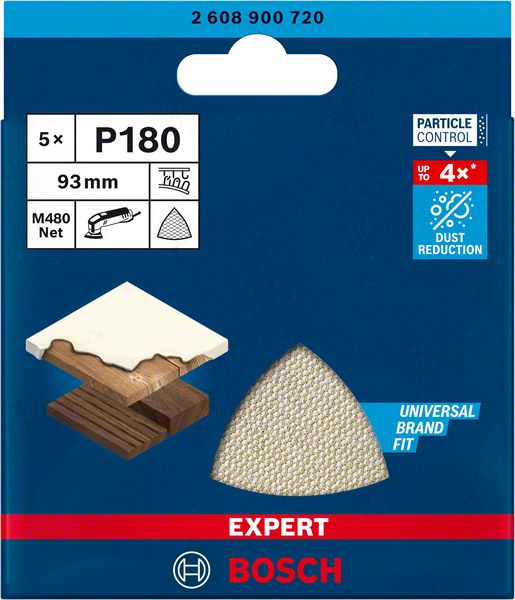 Do 4x bolje smanjenje količine prašine u odnosu na Bosch C420 brusni papir – Prašina predstavlja veliki problem kod brušenja. Lepi se za brusni papir, pa on postaje beskoristan. Prekriva sve što je u sobi i prodire kroz celu kuću. Zato smo smislili tehnologiju Bosch Particle Control i unapredili smanjenje prašine na novi nivo. Bosch Particle Control osigurava da usisivač ili filter uvuku sve čestice prašine. Najvažniji deo ovog sistema je Bosch EXPERT M480 brusna mreža: Čestice se kreću pravo kroz njegovu otvorenu mrežu umesto da začepe površinu ili zagađuju vazduh. To ga takođe čini veoma efikasnim i izuzetno dugotrajnim. Smanjenje prašine prilikom brušenja nije lako, ali smo pronašli rešenje. Ova Bosch EXPERT M480 brusna mreža koristi našu tehnologiju Particle Control da bi nivo prašine sveo na najmanju meru. Samo zakačite pomoću čičak trake.
