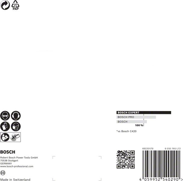 Do 4x bolje smanjenje količine prašine u odnosu na Bosch C420 brusni papirIzuzetno efikasno uklanjanje prašine uz Bosch Particle Control.Samo zakačite pomoću čičak trake.Idealna je za veoma delotvorno brušenje ravnih površina uz vrlo malo prašine, za brušenje i pripremu površina za farbanje i za pripremu ili završnu obradu gipsa.EXPERT abrazivi – najbolji za sve zanate.