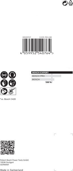 Do 4x bolje smanjenje količine prašine u odnosu na Bosch C420 brusni papirIzuzetno efikasno uklanjanje prašine uz Bosch Particle Control.Samo zakačite pomoću čičak trake.Idealna je za veoma delotvorno brušenje ravnih površina uz vrlo malo prašine, za brušenje i pripremu površina za farbanje i za pripremu ili završnu obradu gipsa.EXPERT abrazivi – najbolji za sve zanate.
