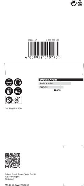 Do 4x bolje smanjenje količine prašine u odnosu na Bosch C420 brusni papirIzuzetno efikasno uklanjanje prašine uz Bosch Particle Control.Samo zakačite pomoću čičak trake.Idealna je za veoma delotvorno brušenje ravnih površina uz vrlo malo prašine, za brušenje i pripremu površina za farbanje i za pripremu ili završnu obradu gipsa.EXPERT abrazivi – najbolji za sve zanate.
