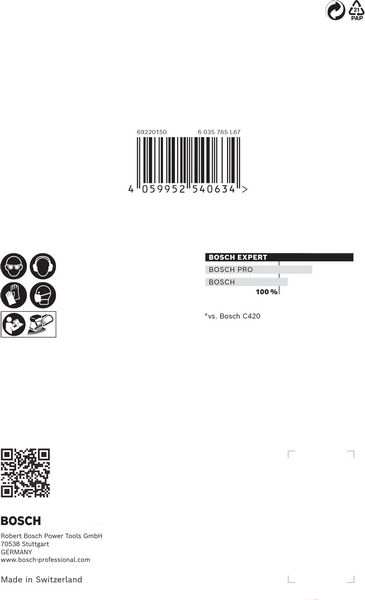 Do 4x bolje smanjenje količine prašine u odnosu na Bosch C420 brusni papirIzuzetno efikasno uklanjanje prašine uz Bosch Particle Control.Samo zakačite pomoću čičak trake.Idealna je za veoma delotvorno brušenje ravnih površina uz vrlo malo prašine, za brušenje i pripremu površina za farbanje i za pripremu ili završnu obradu gipsa.EXPERT abrazivi – najbolji za sve zanate.