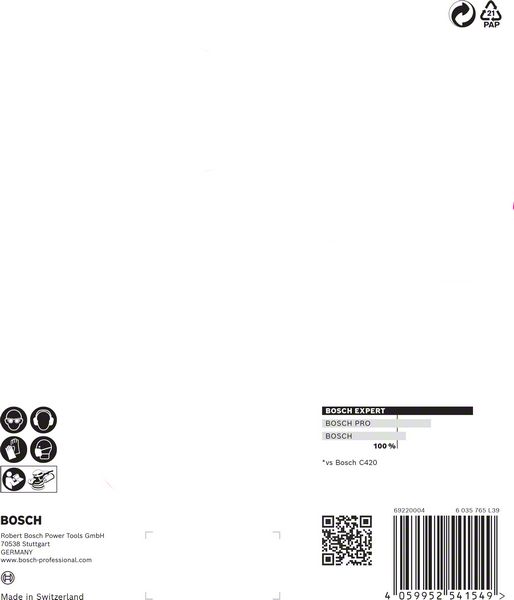 Do 2x brže od Bosch C420 brusnog papiraMinimalna abrazija uz Surface Structure kompanije Bosch.Samo zakačite pomoću čičak trake.Idealan je za veoma delotvorno brzo brušenje ravnih površina, uklanjanje stare farbe ili glačanje, pripremu i završnu obradu površina.EXPERT abrazivi – najbolji za sve zanate.