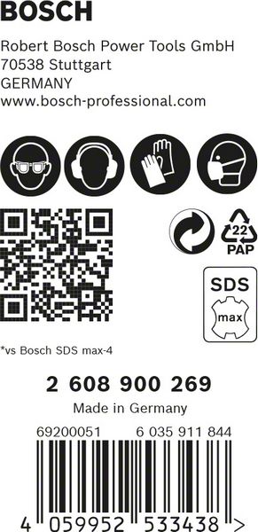 Traje do 3x duže od Bosch SDS max-4 burgije – Bušenje armiranog betona je težak posao i oduvek je oštećivalo burgije za udarne bušilice. Čak se i burgije sa 4 rezača brzo troše, što dovodi do gubljenja vremena u menjanju pribora i nabavljanju potrošnog materijala. Potpuno karbidna glava burgije EXPERT SDS max-8X ima napredni dizajn sa 4 sekača napravljenih od jednog komada najtvrđeg metala: Ne zaglavljuje se i nema nikakvih slabosti pri udaru. Zahvaljujući Bosch Carbide Technology i potpuno karbidnoj glavi, EXPERT SDS max-8X traje mnogo duže od običnih burgija za udarne bušilice. Delotvorno probija armaturu, pa nema potrebe da stajete, ponovo ciljate ili menjate burgije kada udarite u čelik. Za građevinske profesionalce koji redovno buše beton i armirani beton, recimo za ankere velike nosivosti ili produžetke armature, Bosch EXPERT SDS max-8X burgija za udarne bušilice nudi neprevaziđene performanse, pouzdanost i dug radni vek. To je EXPERT pribor za SDS max elektro-pneumatske bušilice. Odgovara za sve SDS max burgije za čekiće za bušenje.