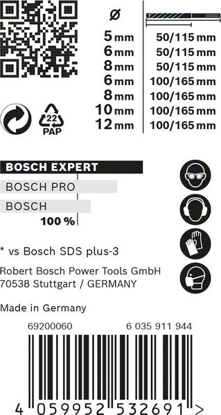 Traje do 3x duže od Bosch SDS plus-3 burgije – Bušenje armiranog betona je težak posao i oduvek je oštećivalo burgije. Obične burgije sa dva sekača se zaglavljuju u armaturi i na kraju lome. Potpuno karbidna glava burgije EXPERT SDS plus-7X ima napredni dizajn sa 4 sekača napravljenih od jednog komada najtvrđeg metala: Ne zaglavljuje se i nema nikakvih slabosti pri udaru. Zahvaljujući Bosch Carbide Technology i potpuno karbidnoj glavi, EXPERT SDS plus-7X traje mnogo duže od običnih burgija za udarne bušilice. Delotvorno probija armaturu, pa nema potrebe da stajete, ponovo ciljate ili menjate burgije kada udarite u čelik. Za građevinske profesionalce koji redovno buše beton i armirani beton, recimo za okov i montiranje, Bosch EXPERT SDS plus-7X burgija za udarne bušilice nudi neprevaziđene performanse, pouzdanost i dug radni vek. To je EXPERT pribor za SDS plus elektro-pneumatske bušilice. Odgovara za sve SDS plus burgije za čekiće za bušenje.