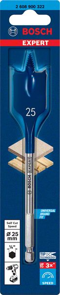 Do 3x brže od Bosch 2609255269 pljosnate burgije – Pljosnate burgije su odličan dodatak za električare i druge montažere i građevinske radnike. Šta ako bi mogli da budu još brži i efikasniji? Mogu uz Bosch Tip Technology. EXPERT Self Cut Speed ima najnapredniji dizajn za pljosnate burgije, što ih čini jednostavnim za korišćenje i veoma praktičnim za ozbiljne profesionalne korisnike. Njen vrh sa navojem uvlači pljosnatu burgiju u drvo samo uz minimalan pritisak korisnika, što je posebno korisno prilikom bušenja naopačke ili u tesnim usecima. Njen napredni pljosnati dizajn osigurava dodatnu brzinu. Bosch EXPERT Self Cut Speed pljosnata burgija jednako je dobra za sve vrste mekog drveta, pa pruža efikasnost i pogodnost profesionalcima koji buše rupe za kablove, cevi i drugi pribor tokom montaže. Šestostrani prihvat od 1/4″ za korišćenje sa steznim glavama bušilica odvrtača sa tri hvataljke i šestostranim steznim glavama bušilica odvrtača.