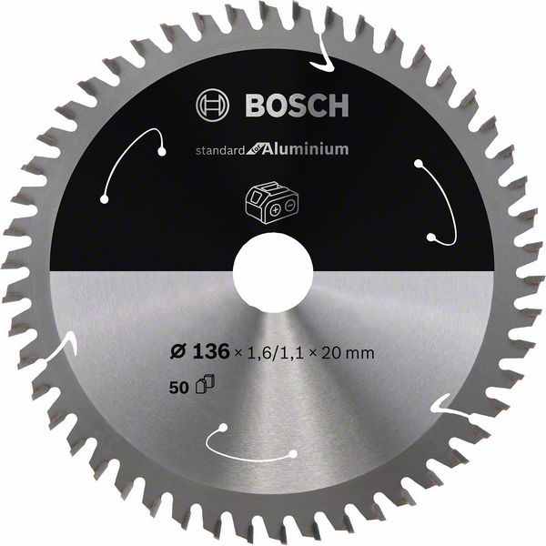 List kružne testere 136 x 1,6/1,1 x 20 / T50 Standard for Aluminium za akumulatorske testere | 2608837754