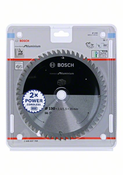 List kružne testere 190 x 2/1,5 x 20 / T56 Bosch Standard for Aluminium za akumulatorske testere | 2608837769