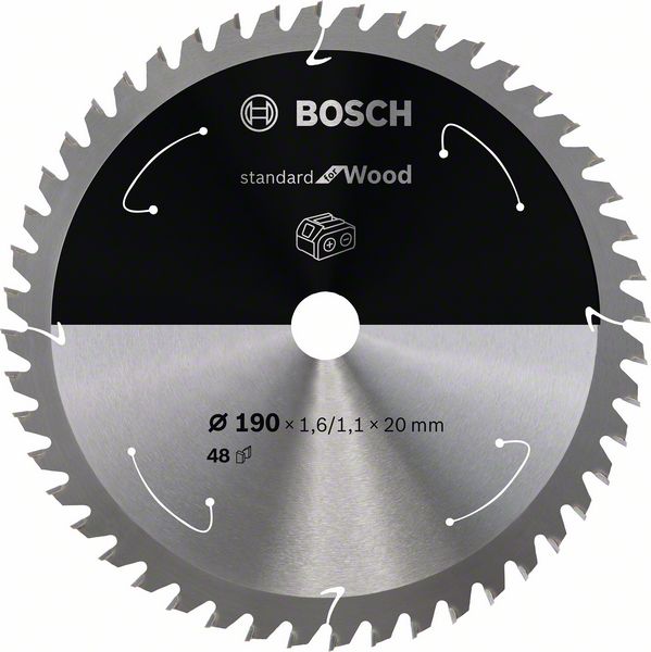 Najduži vek trajanja baterije – Standard for Wood list kružne testere pruža najduži vek trajanja baterije akumulatorske testere. Njegov veoma tanak prorez umanjuje trenje i uklanjanje materijala, čime troši manje energije za testerisanje bez napora. Zupci od visoko kvalitetnog karbida podržavaju pouzdane rezultate. Agresivni uglovi zuba omogućavaju lagano sečenje. Pogodan je za sečenje svih vrsta drveta i drvenih materijala. List testere odgovara svim uobičajenim akumulatorskim stacionarnim i akumulatorskim pokretnim kružnim testerama. Standard for Wood list kružne testere omogućava pouzdane rezultate sečenja zahvaljujući visokokvalitetnim karbidnim zupcima. Prorezi za proširenje primetno smanjuju buku i zagrevanje tokom rada. Burgija radi sa ili bez redukcionih prstenova kako bi odgovarala različitim veličinama.