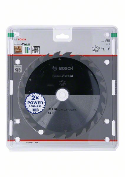 List kružne testere 216 x 1,7/1,2 x 30 / T24 Bosch Standard for Wood za akumulatorske testere | 2608837724