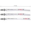 Komplet koji sadrži T 308 BF i T 308 BFP za čistije rezove – Za tesare i stolare oduvek je bila umetnost da se postaraju da se čista strana ubodnog reza nađe na vidljivom delu radne površine. Ponekad možete da okrenete radnu površinu, a ponekad sama ubodna testera može da se drži naopako. A možete i da koristite EXPERT „Hardwood 2-side clean“, koji nudi savršen rez bez cepanja sa obe strane zahvaljujući svojim kontra-usmerenim zupcima. Genijalni dizajn ovih listova ubodne testere znači da nije potreban dalji rad nakon sečenja – zupci izbegavaju cepanje na potezima nagore i nadole. Ovo je savršeno za profesionalce koji žele da uštede vreme, a da svojim klijentima obezbede najkvalitetniji rad. Napravljen od Bi-Metala – trake čelika za velike brzine zalepljenog za fleksibilni čelični list testere kako bi se kombinovala snaga i fleksibilnost – Bosch EXPERT „Hardwood 2-side clean“ list ubodne testere je dovoljno robustan da iseče kuhinjske ploče od laminirane iverice ili tvrdo drvo. Dostupan je za uzastopne rezove bez cepanja (T308BF) i za posebno precizne rezove bez cepanja pod uglom (T308BFP) Odgovara za sve ubodne testere sa T držačem.