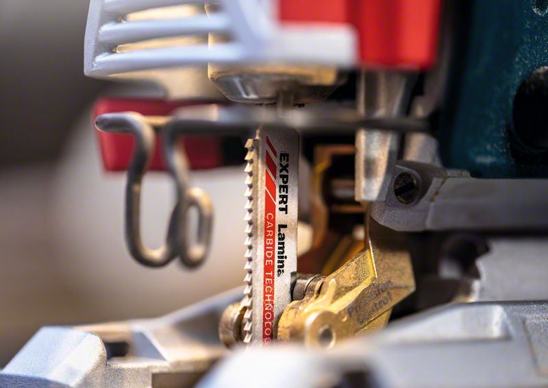 Traje do 50x duže od Bosch T101B noža u tvrdim materijalima – Prilikom ugradnje laminatnih podova ili HPL obloga želite čist rez od ubodne testere – ali materijal je toliko abrazivan da se normalni listovi testere brzo tupe i više ne funkcionišu. EXPERT „Laminate Clean“ kombinuje čisto sečenje kontra-usmerenih zuba i Carbide Technology, kako bi održao odlične performanse tokom veoma dugog radnog veka. Njegova konfiguracija zubaca od karbida osigurava ponovljene, visokokvalitetne rezove u abrazivnim materijalima kao što su vinilni podovi ojačani vlaknima i laminatne ploče visokog pritiska. Veoma fini zupci seku glatko u tankom materijalu, a kontra-usmeren dizajn znači da je rez veoma čist sa obe strane. Bosch EXPERT „Laminate Clean“ list ubodne testere je vrhunski list testere za rad u laminatu. Zbog veoma dugog radnog veka, to je takođe jasan najbolji izbor za profesionalce kojima je dosta da bacaju novac na listove ubodne testere koji ne traju. Odgovara za sve ubodne testere sa T držačem.