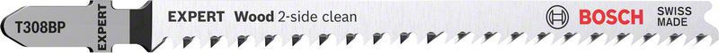 Veoma čista završna obrada gore i dole – Za tesare i stolare oduvek je bila umetnost da se postaraju da se čista strana ubodnog reza nađe na vidljivom delu radne površine. Ponekad možete da okrenete radnu površinu, a ponekad sama ubodna testera može da se drži naopako. A možete i da koristite EXPERT „Wood 2-side clean“, koji nudi savršen rez bez cepanja sa obe strane zahvaljujući dvostrukom redu zubaca. Genijalni dizajn ovih listova ubodne testere znači da nije potreban dalji rad nakon sečenja – zupci izbegavaju cepanje na potezima nagore i nadole. Ovo je savršeno za profesionalce koji žele da uštede vreme, a da svojim klijentima obezbede najkvalitetniji rad. Sa svojim posebno oštrim precizno brušenim zupcima, Bosch EXPERT „Wood 2-side clean“ list ubodne testere je pogodan za sečenje mekog drveta debljine do 50 mm. Stolari koji prave nameštaj mogu da dobiju savršenu završnu obradu i da ne gube vreme šmirglajući posle svakog rezanja ubodnom testerom. Dostupan je za prave rezove (T308B), za zakrivljene rezove (T308BO) i za precizne rezove pod uglom (T308BP) Odgovara za sve ubodne testere sa T držačem.