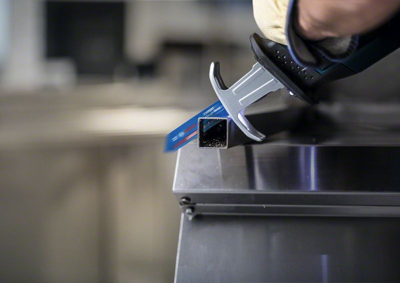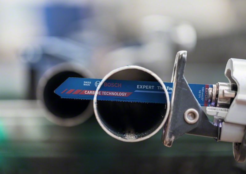 Traje do 50x duže od Bosch S922EF noža u tvrdim materijalima – Sečenje tankog lima i cevi sa tankim zidovima je težak posao, ali uz dobar list univerzalne testere možete da se snađete: pravi problemi počinju kada sečete nerđajući čelik. Ovaj žilavi visokolegirani čelik je prepreka za građevinske radnike ili radnike na renoviranju i uništava listove testere. Bosch Carbide Technology ove probleme šalje u prošlost. EXPERT „Thin Tough Metal“ predstavlja skok unapred u razvoju listova univerzalne testere, jer je u njemu najtvrđi metal integrisan u konstrukciju zubaca optimizovanu za čelični lim i cevi. Zupci su brušeni na finu geometriju koja omogućava glatko sečenje čak i tankih tabli od nerđajućeg čelika. Idealan za metalce, vodoinstalatere, montažere i renovatore, Bosch EXPERT „Thin Tough Metal“ list univerzalne testere ne samo da radi poslove koji su ranije bili sve skoro nemogući, već nudi i izuzetno dug radni vek. Odgovara za sve univerzalne testere sa S držačem.