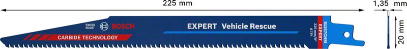 Traje do 50x duže od Bosch S1122BF noža u tvrdim materijalima – U spasavanju iz vozila, brz ulazak u automobil može biti pitanje života i smrti. Hitne službe sve više koriste univerzalne testere kao dragoceno sredstvo za spasavanje, ali potreban im je ozbiljno dobar list testere koji pouzdano može da preseče moderni automobilski čelik. EXPERT „Vehicle Rescue“ je dizajniran za ovaj ključni zadatak. Ovaj EXPERT za sečenje vozila ima veoma tvrdi karbid u zupcima i poseban dizajn vrha koji omogućava listu testere da uroni u lim i iseče ga. Ovo se koristi u tipičnim metodama spasavanja kao što je prosecanje dodatnih vrata ili pristup putnicima kroz krov. Kratka S957CHM verzija je idealna za uklanjanje vetrobranskih stakala, dok je duži S1157CHM dizajniran za sečenje A, B i C stubova napravljenih od ojačanog čelika. Napravljen uz Bosch Carbide Technology, Bosch EXPERT „Vehicle Rescue“ list univerzalne testere seče savremena vozila brzo i pouzdano – i pomaže vam da spasite živote. Odgovara za sve univerzalne testere sa S držačem.