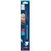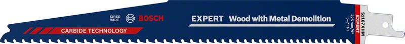 Traje do 50x duže od Bosch S1111DF noža u tvrdim materijalima – Šta je još čvršće od Bosch karbidnog lista testere? Bosch karbidni list testere sa ojačanim zupcima, naravno! Ponekad je primena lista testere kod rušenja toliko zahtevna da se zupci otkinu. Zato ih je Bosch još više ojačao. Za najteže radove na rušenju, Bosch je razvio EXPERT „Wood with Metal Demolition“. Progresivno rastojanje osigurava da ga ne iznenađuju promene debljine materijala; pojedinačno ojačani bokovi zubaca izdržavaju najgore uticaje čelika velike snage ugrađenog u drvo; sve to omogućava sposobnost karbida da probije sve što mu se nađe na putu. Kada apsolutno morate da srušite najsnažnije strukture i okove, odlučite se za Bosch EXPERT „Wood with Metal Demolition“ list univerzalne testere. Izdržaće sve sa čim se suoči i nastaviti da seče. Odgovara za sve univerzalne testere sa S držačem.