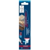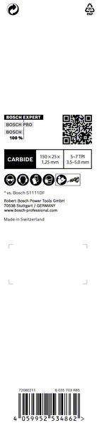 Traje do 50x duže od Bosch S1111DF noža u tvrdim materijalima – Šta je još čvršće od Bosch karbidnog lista testere? Bosch karbidni list testere sa ojačanim zupcima, naravno! Ponekad je primena lista testere kod rušenja toliko zahtevna da se zupci otkinu. Zato ih je Bosch još više ojačao. Za najteže radove na rušenju, Bosch je razvio EXPERT „Wood with Metal Demolition“. Progresivno rastojanje osigurava da ga ne iznenađuju promene debljine materijala; pojedinačno ojačani bokovi zubaca izdržavaju najgore uticaje čelika velike snage ugrađenog u drvo; sve to omogućava sposobnost karbida da probije sve što mu se nađe na putu. Kada apsolutno morate da srušite najsnažnije strukture i okove, odlučite se za Bosch EXPERT „Wood with Metal Demolition“ list univerzalne testere. Izdržaće sve sa čim se suoči i nastaviti da seče. Odgovara za sve univerzalne testere sa S držačem.