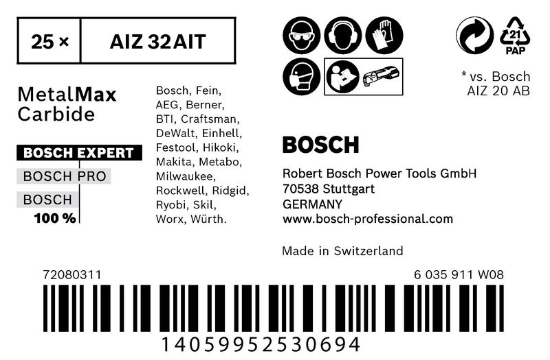 Traje do 50x duže od Bosch AIZ 20 AB nožaExceptional durability is built in with Bosch Carbide Technology.Nosač Starlock za optimalan prenos snage i laku zamenu lista testere u roku od 3 sekunde.Idealan je za sečenje metala: za rezove u ravni (npr. odsecanje kaljenih vijaka i eksera), sečenje metalnih cevi i raznih kaljenih metala pomoću oscilujućeg višenamenskog alata.Korišćenje sa multifunkcionalnim alatom uz izvanredne performanse.